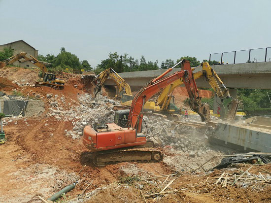 中鐵建大橋局一公司棋盤洲長江公路大橋項目本次爆破采用微差控制爆破方式,最大程度減小對距離僅十米的天橋及附近居民的影響,清渣采用多臺鑿巖機、鏟車、挖機、排土車進行配合,現(xiàn)場作業(yè)人員80余人,確保三小時內(nèi)完成清運工作,確保按期通車。