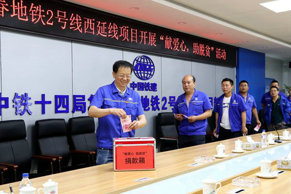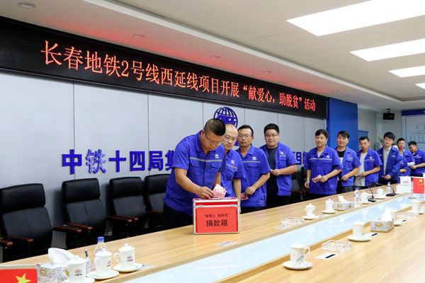中國鐵路工程建設(shè)網(wǎng)訊(通訊員 蘭彩霞)為積極響應(yīng)集團(tuán)公司、公司的號(hào)召,7月4日下午3:00,中鐵十四局集團(tuán)長春地鐵2號(hào)線西延項(xiàng)目部黨支部舉行了“獻(xiàn)愛心,助脫貧”捐款活動(dòng)。