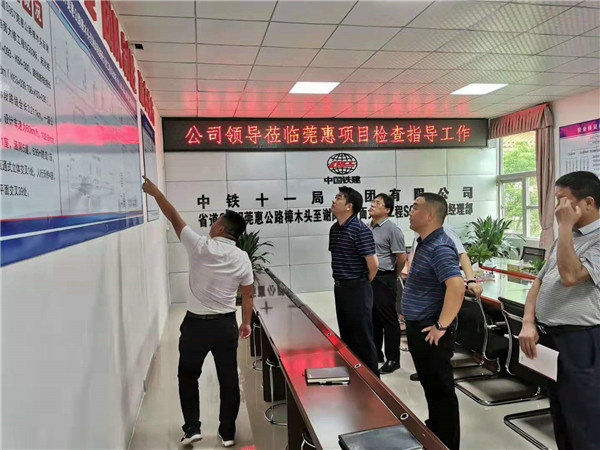 7月1日上午,中鐵十一局二公司總經(jīng)理楊兵、路面管理中心常務(wù)副經(jīng)理丁永全、公司人力資源部陳紅杰、發(fā)展規(guī)劃部吳志祥一行蒞臨廣東省東莞市莞惠公路項目檢查指導工作。