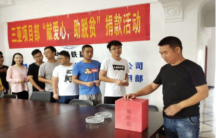 為全面完成“精準(zhǔn)扶貧,精準(zhǔn)脫貧”工作目標(biāo),加大對(duì)股份公司定點(diǎn)扶貧的河北省張家口市萬全區(qū)、河北省張家口市尚義縣、青海省果洛州甘德縣幫扶力度,早日打贏脫貧攻堅(jiān)戰(zhàn),中鐵二十一局四公司三亞項(xiàng)目黨支部積極響應(yīng)股份公司黨委和公司黨委號(hào)召,于7月7日至8日開展了“獻(xiàn)愛心、助脫貧”捐款活動(dòng)。活動(dòng)發(fā)起后,支部黨員積極主動(dòng)帶頭捐款,項(xiàng)目部全體職工紛紛獻(xiàn)出自己的愛心,為定點(diǎn)幫扶地區(qū)的困難群眾伸出自己的援助之手。