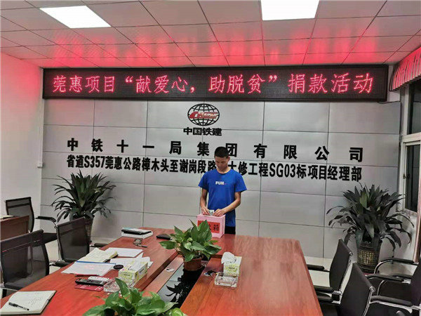 贈(zèng)人玫瑰,手留余香。7月9日,中鐵十一局二公司莞惠項(xiàng)目積極響應(yīng)公司黨委號(hào)召,落實(shí)“獻(xiàn)愛心助脫貧”活動(dòng),項(xiàng)目領(lǐng)導(dǎo)帶頭,全體黨員、團(tuán)員青年踴躍捐款,紛紛獻(xiàn)出一份愛心。大家50元、100元量力而行。項(xiàng)目經(jīng)理李峰作表率捐款500元;項(xiàng)目書記因出差缺席捐款現(xiàn)場(chǎng),但仍通過轉(zhuǎn)賬獻(xiàn)上自己的一份愛心愛心捐款500元。項(xiàng)目同時(shí)開通了支付寶和微信捐款便捷方式以方便大家獻(xiàn)愛心。
