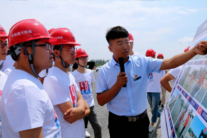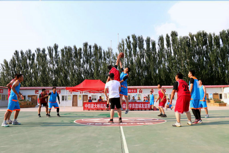 在建項目參觀活動中,22名新學(xué)員在公司業(yè)務(wù)部室的組織下,前往京藏JZLM1標、京藏JZ14標等項目參觀學(xué)習(xí),并觀摩了將在下半年開通運營的銀吳客專銀川機場黃河特大橋,通過參觀,畢業(yè)生切身了解了今后的工作環(huán)境和方向。參觀學(xué)習(xí)之余,畢業(yè)生代表同京藏JZ14標項目部職工開展了一場籃球友誼賽。賽場上,球員在一次次進攻與防守中盡顯了團隊合作的力量,最終比賽以30:30的比分宣告結(jié)束。