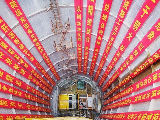 項目總工張健介紹:“經(jīng)勘查設計單位勘查,隧道整體穿越中風砂礫巖層,地質(zhì)條件復雜,頂管距離長。我們項目部與生產(chǎn)廠家聯(lián)合研發(fā),制作了遙控式泥水平衡巖石頂管掘進機,整臺設備重達100多噸,口徑3.5米,為國內(nèi)最大口徑巖石頂管機。”這臺機器將最先進的頂管機技術(shù)集于一身,多項技術(shù)在業(yè)內(nèi)領(lǐng)先。采用遙控式遠程控制,操作人員在工作井外就可以操作;可以在機器內(nèi)部更換刀頭,保證人身安全;頂管機裝配了泥漿流量計和刀頭高壓水流清洗等設備,計量準、速度快。