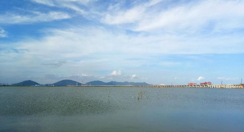 珠海洪鶴大橋HHTJ4標(biāo)段橋梁樁基均位于鶴洲南圍墾區(qū)魚塘中,魚塘水深,淤泥層厚,且時(shí)常有臺風(fēng)暴雨,項(xiàng)目工期緊,任務(wù)重,工程難度大。為此,項(xiàng)目一開始就以快速推進(jìn)施工生產(chǎn)為工作重心,以下達(dá)的節(jié)點(diǎn)工期為目標(biāo),集結(jié)各種資源,細(xì)化施組,精心謀劃,想方設(shè)法克服諸多不利因素,搶晴天,戰(zhàn)雨天,在鶴洲南圍墾區(qū)上完成了一個(gè)又一個(gè)重要的工程挑戰(zhàn)。