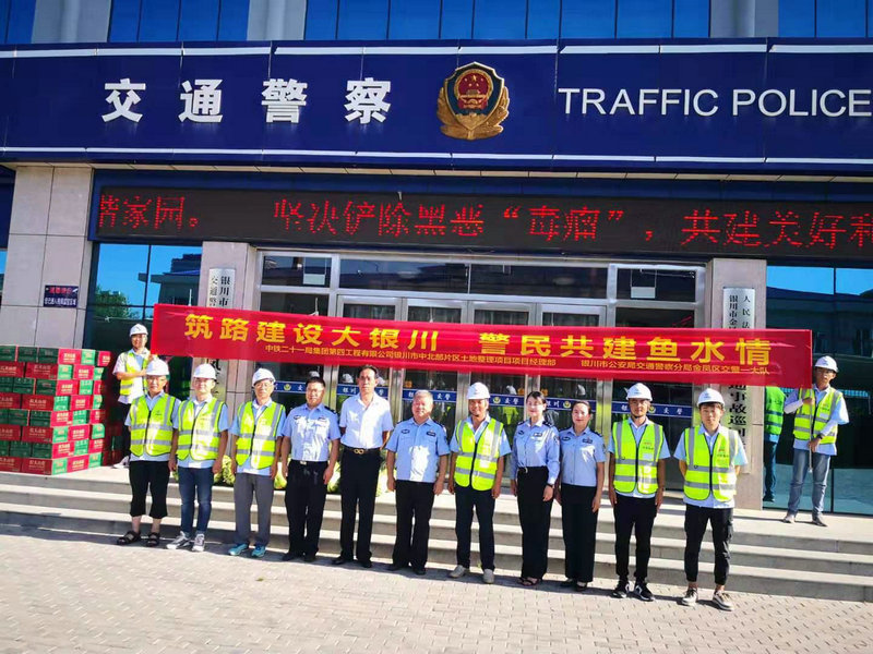 在這個(gè)揮汗如雨的酷熱季節(jié)里,為確保銀川市民出行的暢通,民警同志們頂高溫、斗酷暑,戰(zhàn)斗在城市各條交通要道上,為城市的交通安全做出很大的貢獻(xiàn)。為了表達(dá)對(duì)廣大民警同志辛勤工作的敬意,銀川市中北部片區(qū)土地整理項(xiàng)目部走進(jìn)警營開展了警民共建活動(dòng),對(duì)辛勤的民警表示慰問,也希望通過這次共建活動(dòng),進(jìn)一步加深相互的了解,利用銀川市中北部片區(qū)土地整理項(xiàng)目這個(gè)平臺(tái),共同攜手,為銀川市的和諧、文明和繁榮發(fā)展做出積極的貢獻(xiàn)!