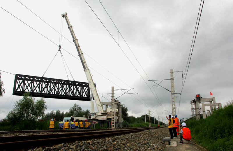 7月25日10時40分,哈爾濱至牡丹江鐵路電氣化改造項目濱綏線K58+711天橋跨既有線架設(shè)鋼梁,二級封鎖施工順利完成,為加快天橋人行梯道施工進(jìn)度創(chuàng)造了條件。