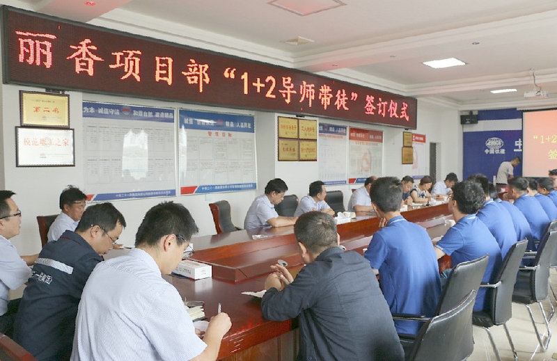 通過座談會、師帶徒簽字儀式、培訓(xùn)會,一是加強師徒之間的業(yè)務(wù)溝通能力,建立和諧的師徒關(guān)系;二是讓師傅們暢談在麗香鐵路項目工作和成長的經(jīng)歷,為徒弟們拋磚引玉;三是指出施工中容易遇到的各種有關(guān)安全質(zhì)量的問題和難題,如何通過自己的思考和努力,較好地解決了這些問題和難題;四是在實踐中學(xué)習(xí),在學(xué)習(xí)中實踐,把在學(xué)校學(xué)到的知識應(yīng)用到工地上,向老同志學(xué)習(xí),向師傅們學(xué)習(xí),勤學(xué)苦練,不恥下問;五是為自己訂目標(biāo),立規(guī)矩,學(xué)習(xí)新知識、新技能、新規(guī)范,把理論與現(xiàn)場相結(jié)合,多琢磨,多思考,盡快成長為企業(yè)的一名合格員工。