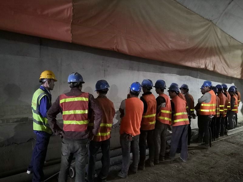 段內芒枕隧道、馬家寨隧施工是項目的重中之重、關鍵之關鍵,隧道地形高差懸殊、地質地形復雜,安全隱患較多、施工技術難度大,給項目部上下帶來壓力。很大的項目二工區(qū)工區(qū)長羅志國、技術員黃林,幾乎把自己釘在作業(yè)面進行全程跟蹤。認真落實隧道施工安全質量保障措施,全力解決影響進度的節(jié)點、焦點問題,嚴格進行了詳細的技術交底,做好各道工序的合理安排。作業(yè)人員在確保安全質量的基礎上,努力加快施工進度,實現(xiàn)最短工期完成節(jié)點任務,使隧道施工生產有效、有序推進。