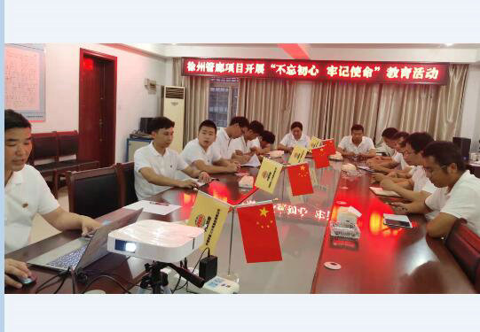 本站徐州訊(通訊員 周婷)近日,中鐵二十局四公司徐州綜合管廊項目黨支部組織開展“不忘初心、牢記使命”主題教育專題學習,重點學習《習近平關于“不忘初心、牢記使命”重要論述選編》《習近平新時代中國特色社會主義思想綱要》,項目部全體黨員參加。