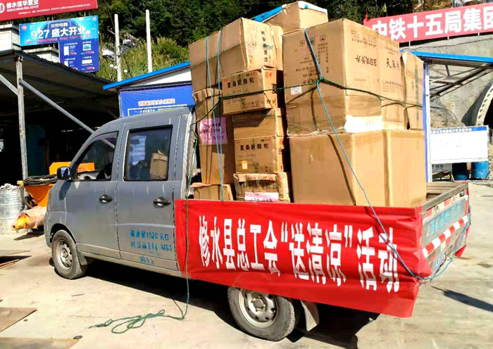 項目工會主席表態(tài):感謝余主席代表縣委縣政府慰問一線職工和農(nóng)民工,項目部高度重視夏季職工和農(nóng)民工防暑降溫工作,采取了許多保障措施,通過落實各項措施,盡可能避免中暑,讓每個人安全度夏,過一個涼爽的夏天。