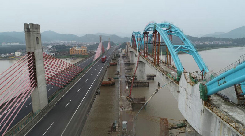 2019年7月31日上午,由中鐵十一局承建金臺鐵路靈江特大橋鋼管拱混凝土頂升施工順利完成,標(biāo)志了靈江特大橋施工又取得突破性進展,預(yù)示著靈江特大橋正式進入鋪軌階段。