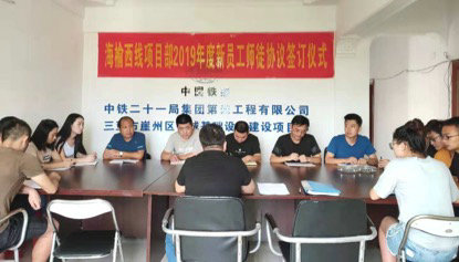 新入職員工在熟悉項目環(huán)境、基本概況,熟讀《中鐵二十一局集團第四工程有限公司師徒結對管理辦法》之后,項目部精心挑選了5名師傅與2名新員工簽訂師徒結對協(xié)議書,開啟了他們?yōu)槠谝荒甑?ldquo;師徒結對”奮斗之旅。