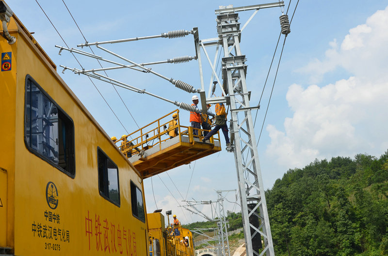 8月9日,在重慶市黔江區(qū)阿蓬江大橋上,最后一公里接觸線架設(shè)順利完成,標志著由中鐵武漢電氣化局運營管理分公司承建的新建黔張常鐵路代建段接觸網(wǎng)全線貫通,即將進入聯(lián)調(diào)聯(lián)試階段,為年底建成開通奠定了基礎(chǔ)。