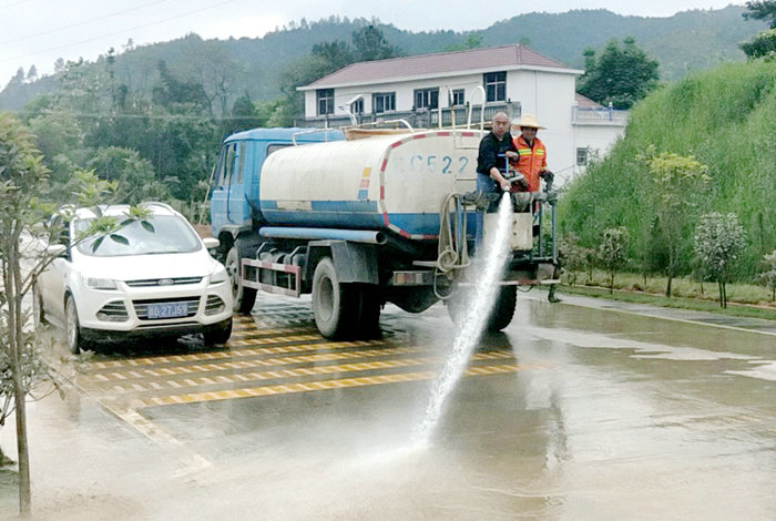 為了履行對(duì)業(yè)主的承諾,項(xiàng)目部定時(shí)組織人員對(duì)車輛灑落在既有線上土塊和石子進(jìn)行打掃,保持路面干凈,為過往車流提供暢通條件。在這基礎(chǔ)上,項(xiàng)目部租用一臺(tái)灑水車,對(duì)隧道出口便道、全路段灑水降塵、消塵,對(duì)路面上無法清掃干凈的泥土,則用高壓水槍強(qiáng)力沖洗。