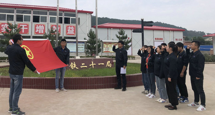 本網(wǎng)甘肅平?jīng)?月6日訊(通訊員 彭英 曹倩)9月5日,為慶祝中華人民共和國成立70周年,中鐵二十一局三公司平天高速PTKZ1標(biāo)項(xiàng)目團(tuán)支部開展了“我與祖國共奮進(jìn)”特別主題團(tuán)日活動,活動旨在通過“沉浸式”的儀式教育激發(fā)項(xiàng)目全體團(tuán)員青年愛黨、愛國、愛社會主義的熱情,進(jìn)一步堅(jiān)定中國特色社會主義道路自信、理論自信、制度自信、文化自信的信念。