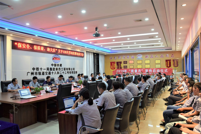 本站廣東廣州訊:9月11日晚,中鐵十一局四公司廣州地鐵項目會議室內(nèi)燈火通明、氣氛熱烈。一場“保安全、保質(zhì)量、迎大慶”大干120天勞動競賽動員大會正在此召開。項目部管理人員、各勞務(wù)施工隊負責人共計70余人參加,中鐵十一局廣州地鐵項目部總工程師李有道、副總工程師李欣受邀出席會議。會議由項目安全總監(jiān)黃鐘主持。