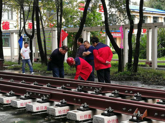 清晨,哈爾濱瑞達(dá)公司岔枕試鋪現(xiàn)場彩旗招展,一組鋪設(shè)完好的60Kg/m鋼軌9號(hào)單開地鐵道岔靜靜等待各位專家的驗(yàn)收。10時(shí)許,哈爾濱地鐵2號(hào)線的各參建方陸續(xù)到達(dá)的現(xiàn)場,各位專家對試鋪完成的道岔進(jìn)行了詳細(xì)的檢驗(yàn),從產(chǎn)品的外觀到整體的適配性進(jìn)行了全面的驗(yàn)收。并參觀了哈爾濱瑞達(dá)公司的軌枕生產(chǎn)線及試驗(yàn)室。