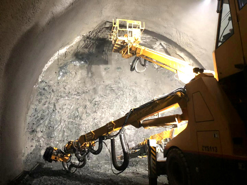 首先,項目從對影響超耗最大的爆破效果入手,聘請西南科技大學爆破專家現(xiàn)場指導,狠抓光爆效果,嚴格控制超欠挖。根據(jù)圍巖的不同情況,優(yōu)化打眼、裝藥方式及爆破參數(shù);調整立架及打眼的先后工序,以減小鑿巖臺車自身機械性能對周邊眼超挖的影響;通過以上措施的實施,隧道超挖量基本控制在10cm以內(nèi),整體光爆效果有了大幅度提高。同時,項目也加強了對噴射混凝土原材料的質量控制,嚴格控制好自加工粗、細集料的強度、級配、含泥量等各項指標滿足規(guī)范要求,并根據(jù)不同水泥品種、水灰比通過現(xiàn)場試驗確定混凝土外加劑、速凝劑的合理摻量,調整好最優(yōu)的施工配合比,在材料自身性能上降低了噴射混凝土的回彈率。技術人員與現(xiàn)場濕噴機械手反復研究,通過對“噴射順序、噴射角度、噴射距離以及噴頭移動速度、一次性噴射厚度”等多方面不斷進行調整,也取得了較好效果,大大降低了噴射混凝土的回彈率并杜絕了掉塊現(xiàn)象。
