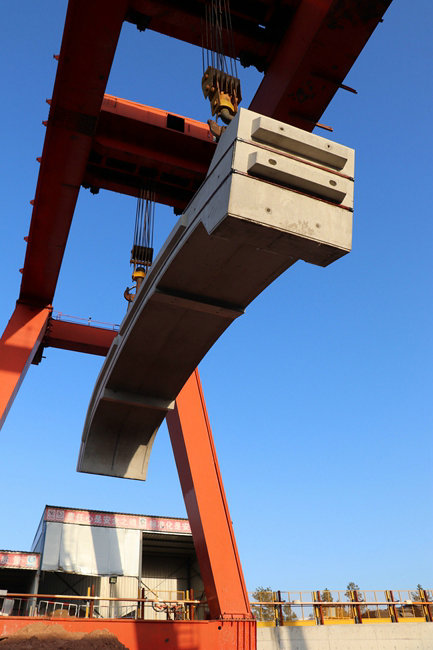 最后一塊混凝土預(yù)制件在吊裝中