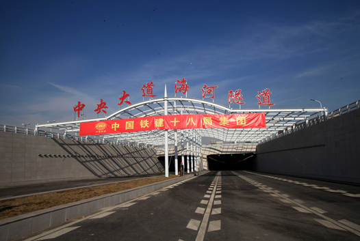 中鐵十八局集團(tuán)五公司商品混凝土公司參與施工的濱海新區(qū)中央大道海河隧道工程(伍振 攝)