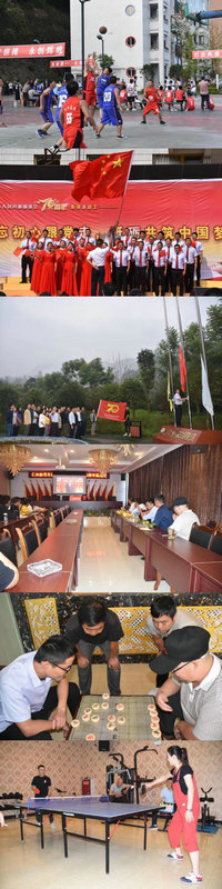 籃球賽場上“打出水平,打出友誼”,充分展示球員的技能戰(zhàn)術(shù)水平,彰顯了團隊的協(xié)作精神。紅歌賽現(xiàn)場,歌聲嘹亮,掌聲雷動,處處洋溢著一派歡樂祥和的氣氛。三十二支代表隊滿懷激情,用飛揚的歌聲,唱出了心中對黨的熱愛,對祖國的祝福,對美好未來的憧憬。項目部代表隊唱出了鐵建員工的豪情,也展現(xiàn)了新時代中國鐵建干部職工朝氣蓬勃、奮發(fā)向上的精神風(fēng)貌。收看“新中國70周年華誕”慶典活動,全體員工都目不轉(zhuǎn)睛地盯著屏幕,一列列有序的方隊出來了,他們身著整齊的軍裝,表情嚴肅端莊,手里持著精良的武器,依次進行亮相。然后是坦克導(dǎo)彈的檢閱,看到這些大家都十分激動,想當(dāng)初的中國只有“小米加步槍”這樣簡陋的武器,如今要多精良有多精良!后面就是人民群眾組成的方隊進行游行,他們神采奕奕,精神抖擻,分別代表他們不同方隊不同的特色。在項目部舉辦的臺球、象棋、跳繩、乒乓球等比賽活動中,大家“八仙過海各顯神通”,拿出“看家本領(lǐng)”,通過角逐都有了屬于自己的收獲。