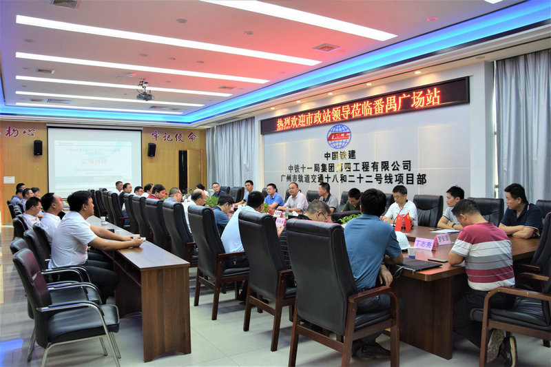 本站廣東廣州訊:10月11日,廣州市市政工程安全質(zhì)量監(jiān)督站黨支部書記劉達明一行人到中鐵十一局四公司廣州地鐵項目番禺廣場站開展調(diào)研活動。
