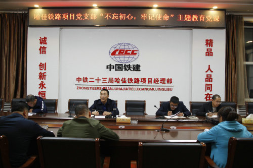 10月19日晚,中鐵二十三局集團二公司哈佳鐵路項目部黨支部在八樓會議室召開了“不忘初心、牢記使命”主題教育專題黨課暨學習會,引領全體黨員進一步統(tǒng)一思想,明確使命,為后期工作打下堅實基礎。