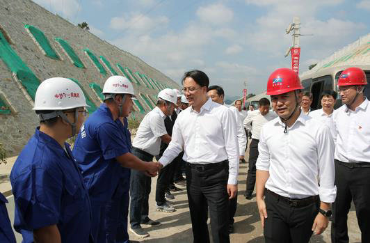 張曉強踏看了靈江特大橋施工現(xiàn)場,與現(xiàn)場參建者們一一握手,對大家為項目建設(shè)付出的努力和取得的成績表示肯定和感謝。