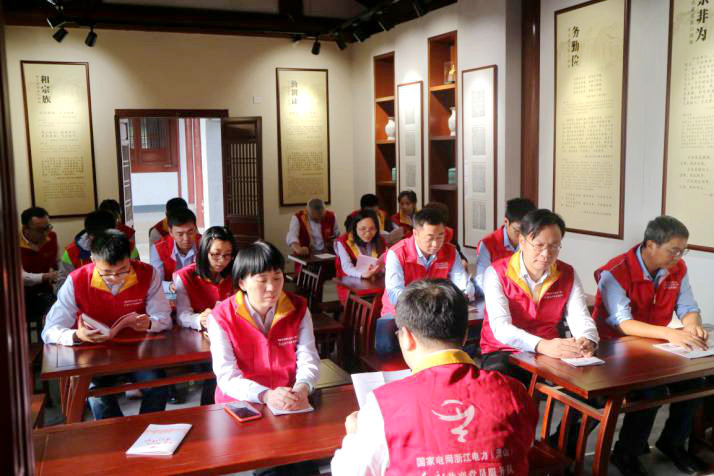 隨后大家來(lái)到了907年前修筑了湘湖的蕭山知縣楊時(shí)紀(jì)念館,在陪同人員的講解下,大家了解了楊時(shí)先生的家風(fēng)家規(guī),學(xué)習(xí)了他一生清正廉明、安貧樂(lè)道的立身做人行為準(zhǔn)則。在清風(fēng)學(xué)堂,兩家單位的黨支部書(shū)記根據(jù)活動(dòng)主題分別為大家上了一堂精彩的黨課。