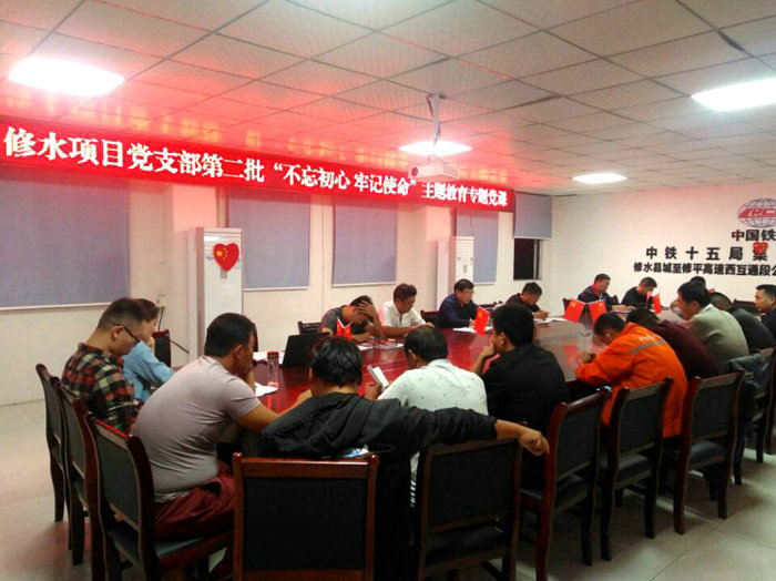 書記上黨課 10月份以來,中鐵十五局集團(tuán)修水G353項(xiàng)目黨支部深入開展第二批“不忘初心、牢記使命”主題教育,以學(xué)習(xí)、座談、上黨課等形式增強(qiáng)黨員和干部的政治意識(shí)、責(zé)任意識(shí),牢記使命擔(dān)當(dāng),形成以黨建引領(lǐng)全員全身心投入本職工作的大好局面。