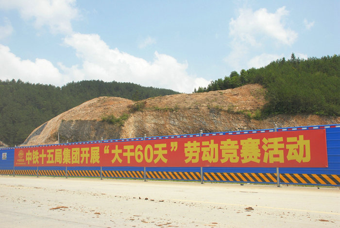 為了使勞動競賽活動從形式到內(nèi)容如火如荼、成效更大,項目部工會牽頭制定了更具人性化、更能充分調(diào)動人員積極性、提高全員生產(chǎn)率、發(fā)揮機械設備最大效率的實施方案。在勞動競賽中,班子成員齊心合力積極想辦法解決分管片區(qū)的各種難題,化解各類矛盾;各職能部門恪盡職守,做到每周的工作必須消化完;現(xiàn)場施工人員嚴格按照施工方案進行施工,保質(zhì)保量、安全地完成每天、每周任務。從隧道掘進噴錨支護襯砌,到橋梁、路基施工再到征拆,均按計劃有條不紊地進行。為鼓舞士氣,在施工現(xiàn)場懸掛多幅有關安全、質(zhì)量、進度等內(nèi)容的長大標語。輿論宣傳效應成為促進勞動競賽收獲碩果的推手,潛移默化地影響和激勵員工做好份內(nèi)的工作,有為才有位成為共識。