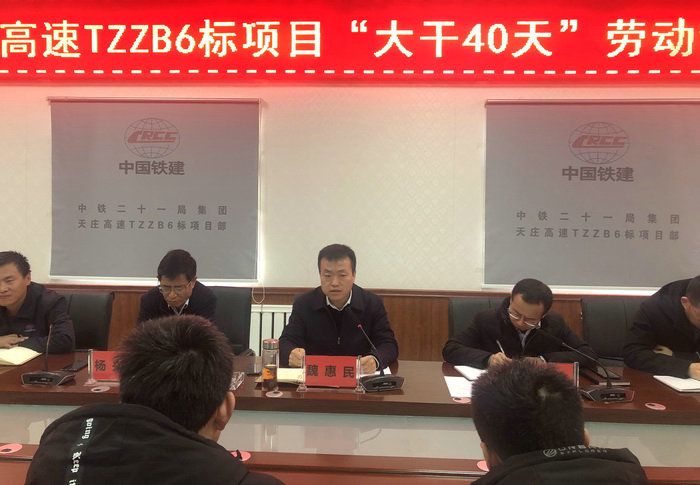會上,項目副經(jīng)理畢鈺下達了“大干40天”勞動競賽節(jié)點目標任務(wù)和獎罰措施;總工趙強對冬季施工質(zhì)量和技術(shù)規(guī)范進行了要求;項目安全總監(jiān)鎖福榮對安全生產(chǎn)工作進行了安排部署;黨支部書記楊興智對大干期間的廉政建設(shè)和工作紀律進行了要求;項目常務(wù)副經(jīng)理柳吉煥與各單位負責人、勞務(wù)隊負責人簽訂目標責任書;工區(qū)代表、班組代表、勞務(wù)隊代表分別做了表態(tài)發(fā)言。