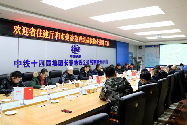 下午2點(diǎn),長春市軌道交通集團(tuán)有限公司副總經(jīng)理江濤在西延線項(xiàng)目部會(huì)議室向檢查組一行匯報(bào)了長春市軌道交通規(guī)劃和建設(shè)現(xiàn)狀以及西延線的工程建設(shè)等情況。項(xiàng)目技術(shù)負(fù)責(zé)人馬傳程在會(huì)上向檢查組人員匯報(bào)了項(xiàng)目部的工程進(jìn)展情況、項(xiàng)目部開展冬期施工的具體措施和有關(guān)冬期施工的安全防范措施以及安全應(yīng)急預(yù)案等情況。