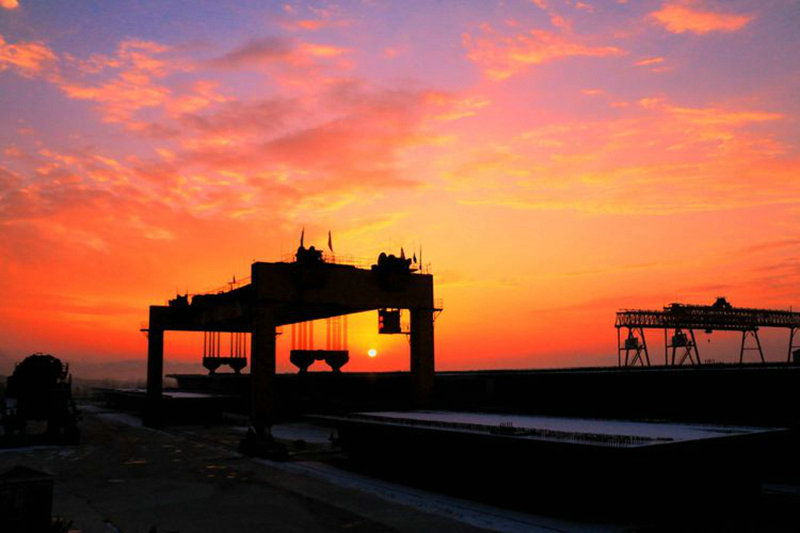 設計預制1085孔簡支箱梁,占地220畝,設制梁臺座15個,存梁臺座118個,最大存梁數(shù)量為253榀,單線梁產能為每月60榀的梁場你可能不知道到底有多大,你只要知道這是亞洲最大在建高鐵梁場就行了。那么建設一個亞洲最大梁場要用多長時間呢?一年?半年?還是3個月?魯南項目給出的答案是42天。這包括平整場地,安裝拌合站、提梁機、龍門吊,搭建鋼筋加工廠、料倉,澆筑制梁臺座、存梁臺座等等大量繁重的基礎建設,以及物資材料是招標進場,拌合站認證等一系列相關配套工作。而且需要強調的是,他們同時還在泗水建設了另一個占地113畝,計劃承擔197榀簡支箱梁的預制任務的大型梁場。難能可貴的是魯南項目兩個梁場同時建設,于2017年4月15日,同時投產澆筑第一榀箱梁,并均于同年6月一次性通過鐵科院專家認證。在短短的時間之內,項目人員克服了多少困難,付出了多少心血,恐怕只有他們自己才清楚。