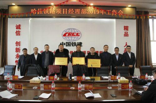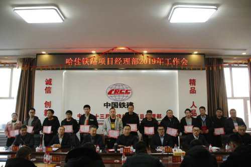 工作會由二公司哈佳鐵路項目部黨支部副書記王維振主持。會上,常務副經理郭慶富做了題為《強化基礎,規(guī)范管理;抓住機遇,順勢而為——為延續(xù)哈佳項目榮譽兌現年度目標而努力奮斗》的工作報告,回顧了2019年哈佳鐵路項目部獲得的一項項驕人成績與創(chuàng)效亮點,總結了2019年施工過程中存在的不足。他提出要及時發(fā)現基礎建設的薄弱之處,抓住施工機遇,順勢發(fā)力而為,正確面對項目面臨的形勢,不斷完善自我,提升思想理念,為2020年工作打好基礎。總經濟師賈廣生在會上通報了2019年度所獲得的由黑龍江省建筑業(yè)協(xié)會、股份公司、集團公司、哈佳公司、二公司、哈佳項目部等表彰的先進集體、先進個人名單,并為2019年項目部先進(生產)工作者頒發(fā)了榮譽證書。賈廣生指出每個人要有“功成不必在我,功成必定有我”的精神和擔當,繼續(xù)在工作中發(fā)揚敬業(yè)有為和釘釘子精神,將工作藍圖繪制到底。