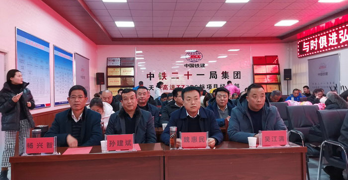 與會領導與演職人員合影留念 魏總在致辭中激勵大家:在新的一年里,要有新的開端和新的作為,成績和榮譽只能代表過去,大家要謙虛謹慎,戒驕戒躁,大力弘揚平天精神,再創(chuàng)天莊新輝煌;天莊項目多家施工勁旅同臺競技,項目所有參加人員要發(fā)揮駐地央企的示范引領作用,要有永爭第一的決心和信心;大家要始終做到“在狀態(tài)、有激情、敢擔當、重落實、 守規(guī)矩”的總要求,堅定信心,迎難而上,團結(jié)協(xié)作,為甘肅人民修建一條致富路,為21局的發(fā)展再立新功!