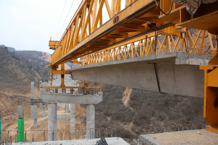 圖為南溝5#橋架設(shè)第一片箱梁 去年以來,百余位參建者克服多雨、高溫、大風(fēng)、嚴(yán)寒低溫等施工不利因素,目前樁基施工已全部完成,澆注墩身完成 88個,箱梁預(yù)制完成 96余片、鋪設(shè) 13片,預(yù)計到2020年5月底能夠全面完成施工。為延黃高速項目部2020年全線開通奠定了堅實的基礎(chǔ)。