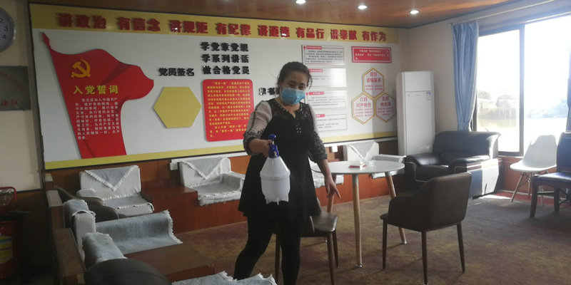 一分部(中鐵十九局管段)值班人員對(duì)項(xiàng)目食堂、辦公區(qū)、廁所等公共點(diǎn)進(jìn)行了全面消毒殺菌。