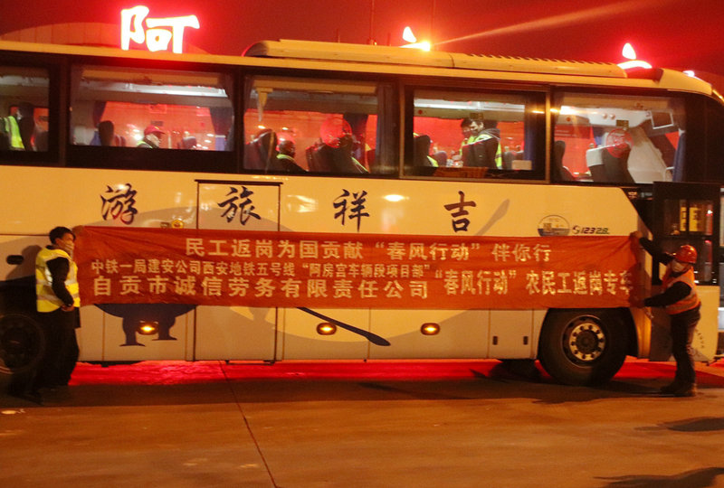 2月23日晚上11點(diǎn),西安地鐵五號(hào)線阿房宮車輛段項(xiàng)目部安排的大巴車,將四川富順的40名農(nóng)民工接回本項(xiàng)目部返崗。這次迎接農(nóng)民工歷時(shí)11個(gè)小時(shí),返程來回1667公里。本次得已順利接到農(nóng)民工兄弟們,正是響應(yīng)國家的"春風(fēng)行動(dòng)",本單位積極與四川省政府相關(guān)部門溝通協(xié)商,取得政府支持,建立綠色通道,幫助農(nóng)民工盡快返崗實(shí)現(xiàn)就業(yè)。