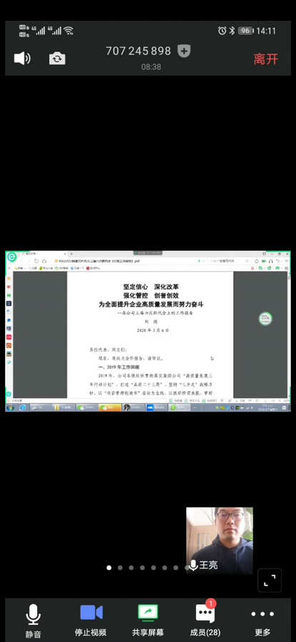 通過本次特殊的視頻會(huì)議,讓齊富項(xiàng)目全體職工認(rèn)真領(lǐng)會(huì)了公司領(lǐng)導(dǎo)講話精神,了解了2019年度的公司情況及2020年公司迎來的大好形式。會(huì)議號召,全體職工立足崗位,勇敢面對當(dāng)前疫情形勢,既要嚴(yán)格控制疫情發(fā)展,又要復(fù)工生產(chǎn),提高產(chǎn)值效益。