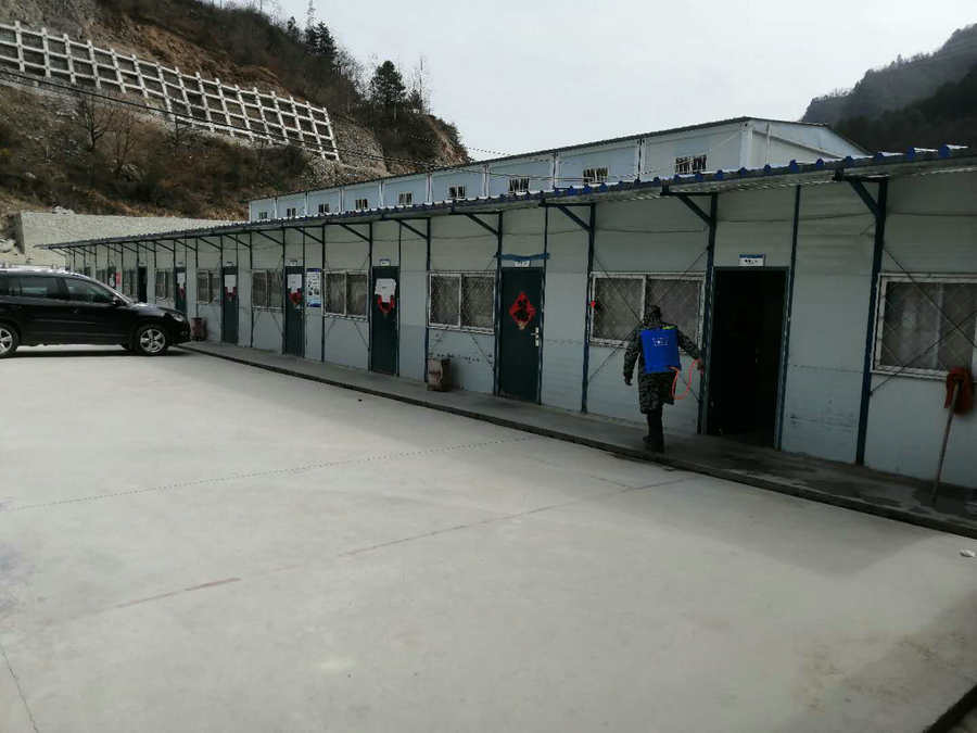 面對突如其來的新冠肺炎疫情,為確保早日復工,該項目部主動出擊,第一時間成立了疫情防控應急小組,制定了疫情防控應急預案。一方面,嚴格遵守當?shù)卣酪咭?,切實抓好工地值守和返崗人員的疫情防范,抓實防范措施落實。項目部提前購置儲備口罩、消毒藥品等防護物資,對返崗人員每天三次體溫監(jiān)測,并做好臺帳登記。每天早晚對各辦公室、宿舍、食堂、衛(wèi)生間、走廊等公共區(qū)域進行嚴格消毒。另一方面,積極做好復工準備,主動與地方政府做好復工事宜溝通協(xié)調(diào),做好復工審批手續(xù),動員湖北省外項目管理人員及施工作業(yè)人員陸續(xù)返崗,按當?shù)卣螅ㄟ^14天隔離期后進入施工現(xiàn)場。