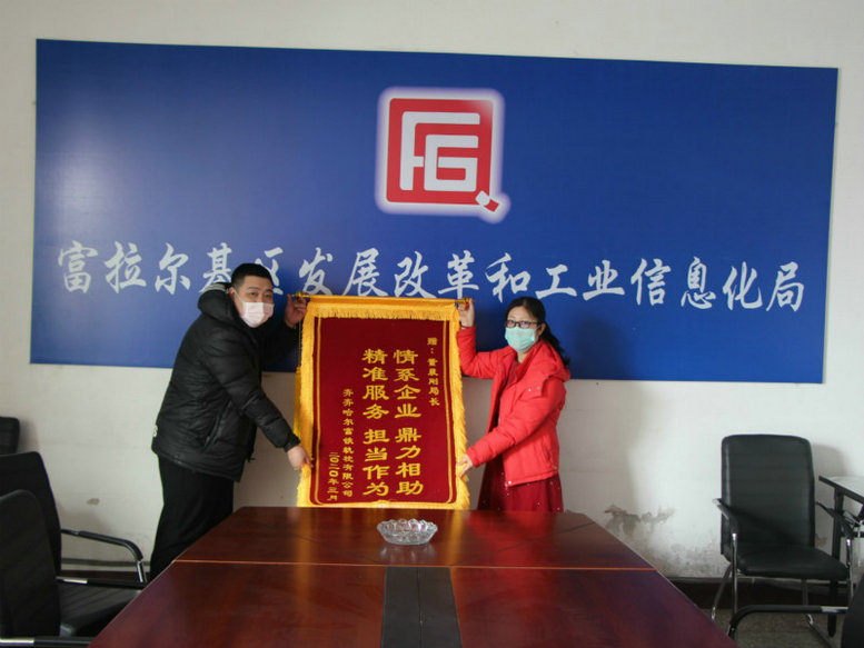 近日,中鐵二十三局二公司齊齊哈爾富鐵軌枕有限公司辦公室主任于昕代表公司領(lǐng)導(dǎo)向富拉爾基區(qū)政府、區(qū)發(fā)展改革和工業(yè)信息科技局分別送去了感謝信和錦旗,感謝富拉爾基區(qū)發(fā)改局在疫情期間給予軌枕公司的無私幫助,為軌枕公司按期復(fù)工解決了難題。
