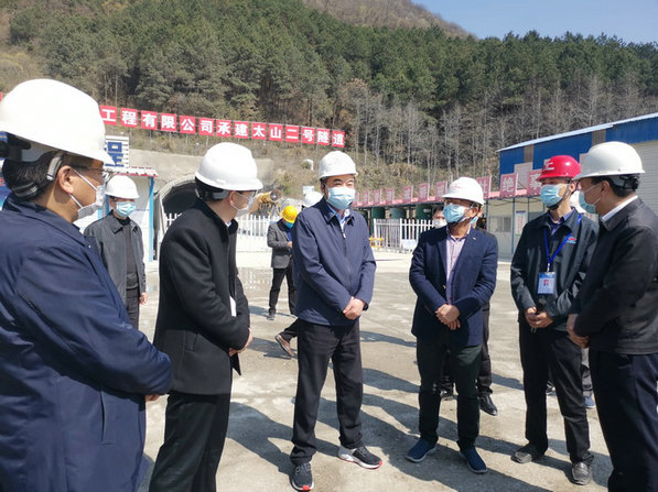 圖為項(xiàng)目負(fù)責(zé)人雒曉亮介紹施工情況 孔市長(zhǎng)說(shuō),蕪黃高速全線,旌德段屬于重點(diǎn)線路,前期征地拆遷工作難度較大,由于安徽省“縣縣通高速”攻堅(jiān)目標(biāo),工期一再壓縮,據(jù)說(shuō)7個(gè)多億的項(xiàng)目只有不到兩年的工期,不論從時(shí)間、人力、物力各方面來(lái)說(shuō)都是一項(xiàng)極大地挑戰(zhàn)。但是,再難也要挺直腰桿去做。你們中鐵二十一局集團(tuán)三公司是一個(gè)優(yōu)秀的企業(yè),相信蕪黃高速9標(biāo)在旌德縣政府、蕪黃高速項(xiàng)目辦以及你們公司的全力支持與協(xié)調(diào)下,定會(huì)圓滿完成任務(wù),給旌德縣、給宣城市,給我們安徽省交一份滿意的答卷。雒曉亮表態(tài),一定不辜負(fù)各級(jí)領(lǐng)導(dǎo)對(duì)我們的期望,保證完成任務(wù)。