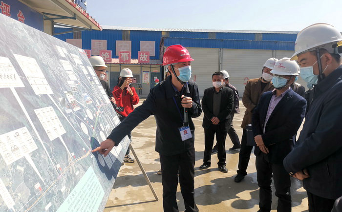 圖為孔曉宏市長(zhǎng)等領(lǐng)導(dǎo)察看路基施工