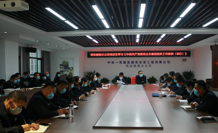 (西安訊)3月27日,中鐵一局建安公司西安建筑分公司黨總支召開全體黨員大會,組織近70名黨員在分公司會議集中學習了《中國共產(chǎn)黨國有企業(yè)基層組織工作條例(試行),西安建筑分公司黨總支書記劉改民主持學習會議。