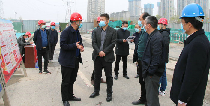 丁曉飛處長一行聽取了項(xiàng)目經(jīng)理胡湛對(duì)鄭州310項(xiàng)目目前施工情況及疫情防控、相關(guān)人員健康及管理等情況詳細(xì)介紹后,主要詢問了目前項(xiàng)目施工生產(chǎn)工作遇到的困難。鄭州310項(xiàng)目位于城區(qū),影響施工因素復(fù)雜多樣,除揚(yáng)塵管控、交通干擾外,受征地拆遷和高壓線改線等條件制約嚴(yán)重。丁處長表示,鄭州310項(xiàng)目目前雖然受到影響因素較多,但項(xiàng)目領(lǐng)導(dǎo)采用見縫插針的工作思路確保施工生產(chǎn)工作順利進(jìn)行的方式值得肯定。
