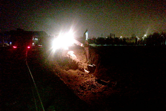 3月29日凌晨,安陽象道物流國際專用線項目工地上工地上燈火通明、機械轟鳴,施工現場干的熱火朝天,洹水灣道路與象道物流專用線立交箱涵底板正在連夜?jié)仓?/p>