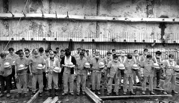 4月4日的廣州,晴轉(zhuǎn)小雨,天空中飄著一層薄薄的陰云,從空中俯瞰,大地肅穆。在廣州地鐵十八和二十二號(hào)線總承包部及10個(gè)分部、43個(gè)工點(diǎn),當(dāng)上午10點(diǎn)鐘到來(lái)的時(shí)刻,所有的設(shè)備停止了運(yùn)轉(zhuǎn),所有的管理人員、施工人員停止了工作,大家等候在設(shè)備旁、佇立在工作間,靜靜地向著下半旗的地方注目著。此刻,萬(wàn)物寂靜,只有鮮艷的五星紅旗迎風(fēng)飄揚(yáng),隨之而來(lái)的是所有的汽笛鳴響,積蓄的力量噴涌而出,悲壯的聲音響切云霄。