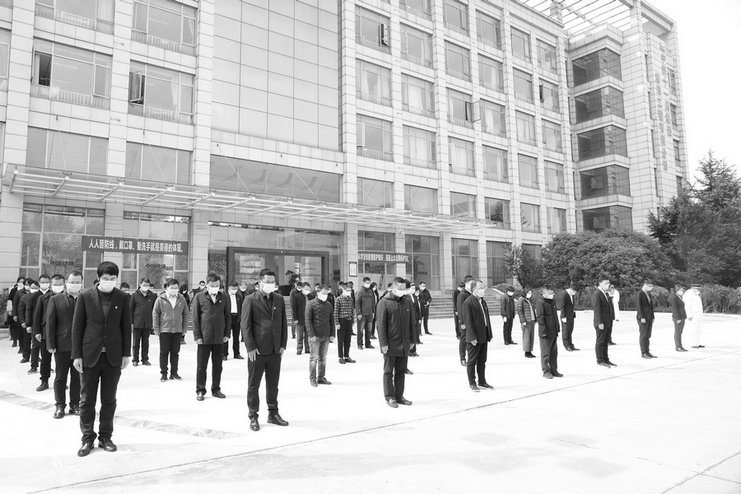 本站湖北武漢訊:4月4日上午10時,在漢央企中鐵十一局四公司機關大院一片靜穆,院內旗桿上國旗半垂,當天值班、加班的60余名職工來到旗桿下,列隊肅立,深切默哀,表達對抗擊新冠肺炎疫情斗爭犧牲烈士和逝世同胞的哀悼。