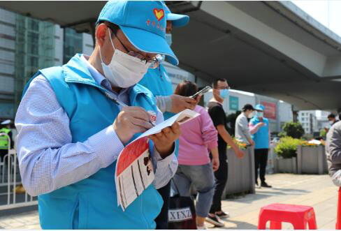 圖為項(xiàng)目經(jīng)理董武俊獻(xiàn)血前填寫登記